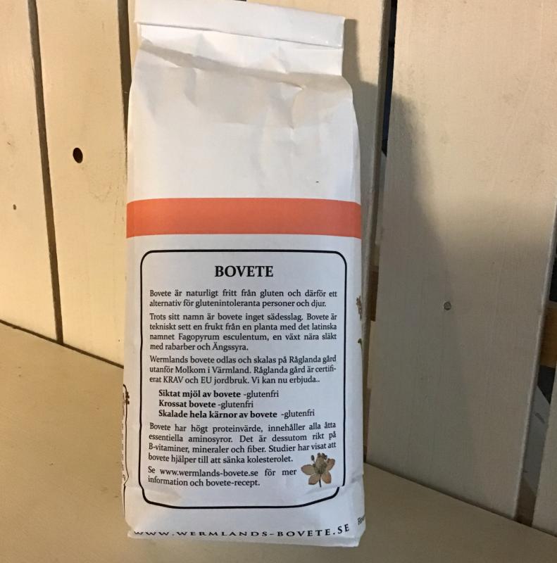 Just nu väntar vi på att bovetet kan tröskas i Värmland. Fjolårets bovete är slut och det nya väntas in, så det kan malas och packas i mitten till i slutet av oktober.